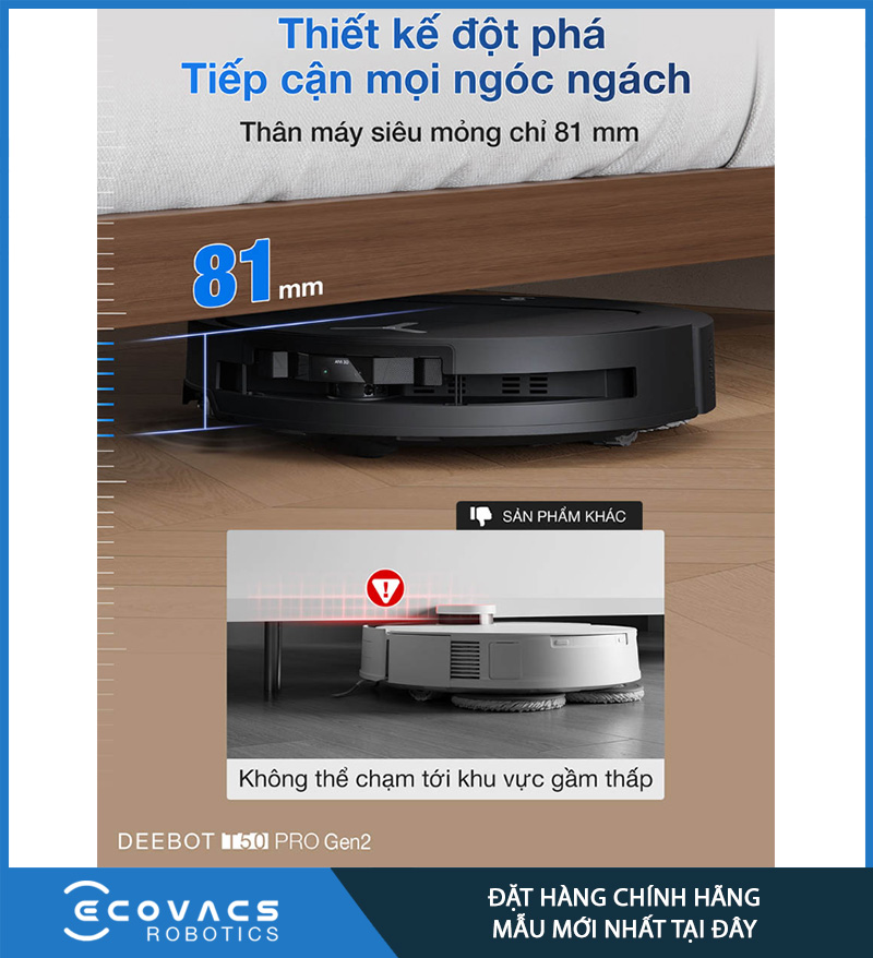 | Kích thước robot (D×R×C) | 352.7 × 351.6 × 81mm |