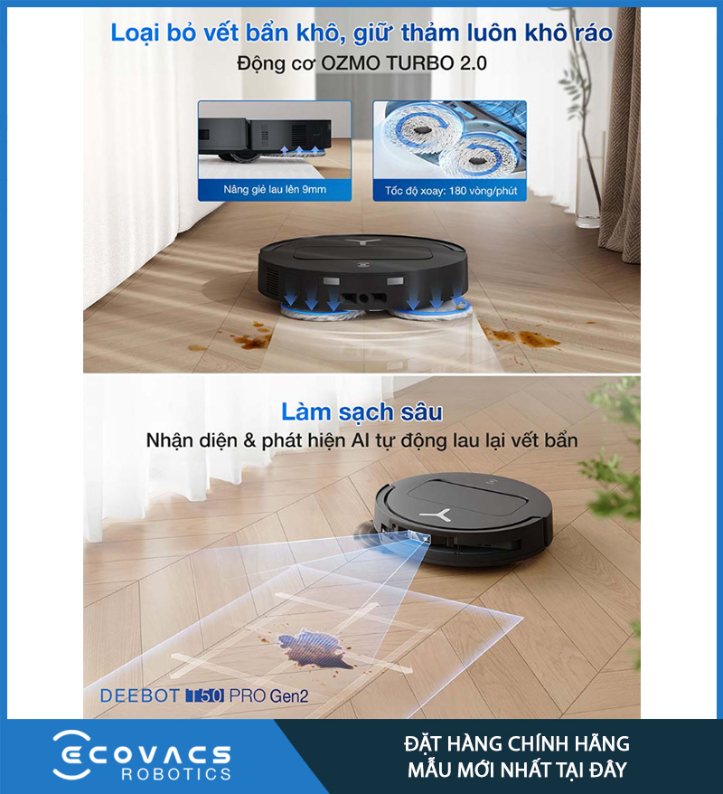 Điểm khác biệt giữa robot “lau cho có” và robot “lau ra sạch” nằm ở chỗ: có biết chỗ nào bẩn để xử lý kỹ hay không. Với T50 Pro Omni Gen 2, hệ thống AI giúp robot nhận diện mức độ bẩn và tự tối ưu cách lau, đặc biệt hữu ích ở những khu vực bẩn nhanh như bếp, khu ăn uống và cửa ra vào.