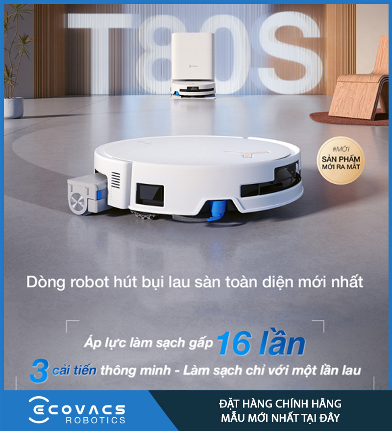 Robot hút bụi lau nhà Ecovacs Deebot T80S Omni – Bản Quốc Tế là dòng robot “all-in-one” hướng tới trải nghiệm dọn nhà rảnh tay: hút mạnh để làm sạch sâu, lau con lăn để sạch thật và trạm OMNI hỗ trợ tự động hóa quy trình vệ sinh sau khi dọn. Nếu bạn đang cần một giải pháp giữ sàn luôn sạch mỗi ngày (đặc biệt nhà có trẻ nhỏ, thú cưng hoặc bận rộn), T80S Omni là lựa chọn tập trung đúng 3 yếu tố: hiệu suất – vệ sinh – tiện lợi.
