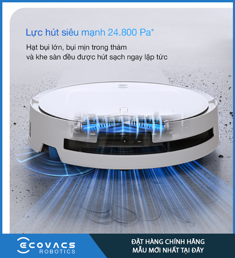 Lực hút mạnh 24.800Pa làm sạch sâu chỉ sau một lần di chuyển