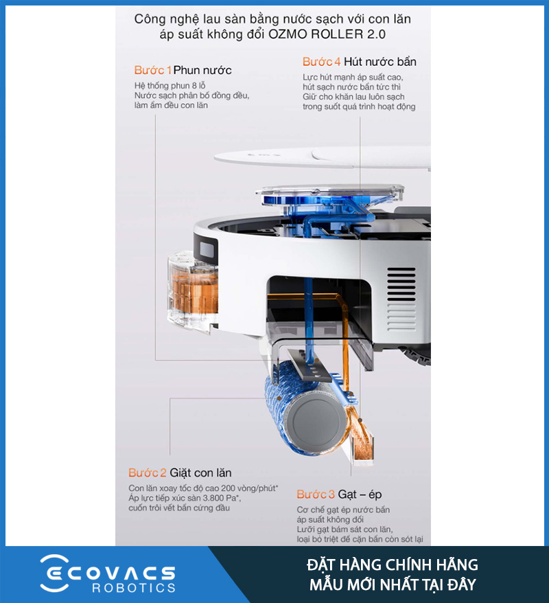Công nghệ lau OZMO Roller 2.0 làm sạch bằng nước sạch liên tục