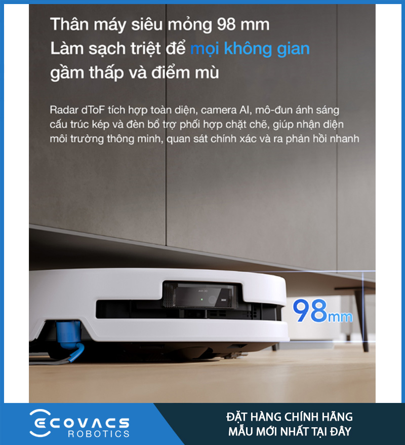 Thiết kế siêu mỏng 98mm linh hoạt làm sạch không gian thấp