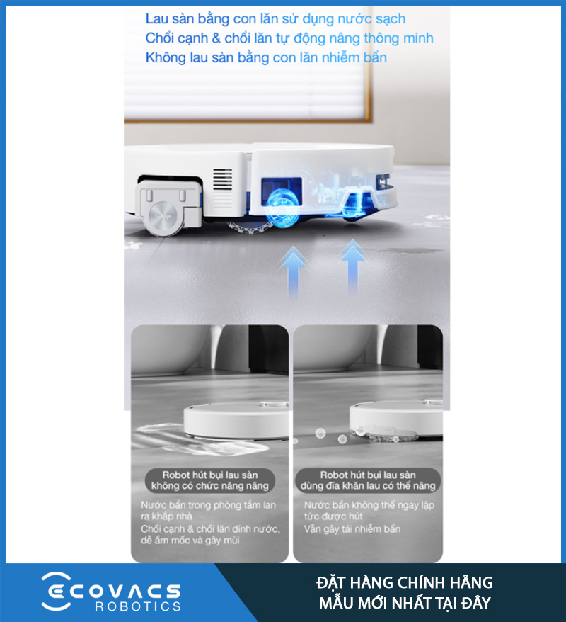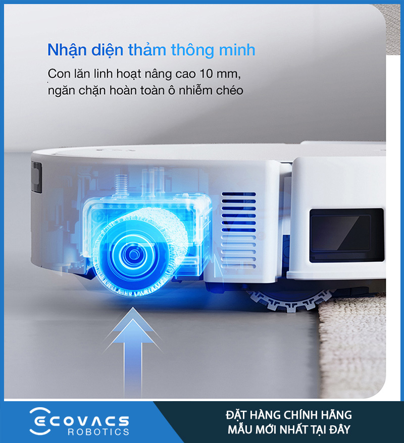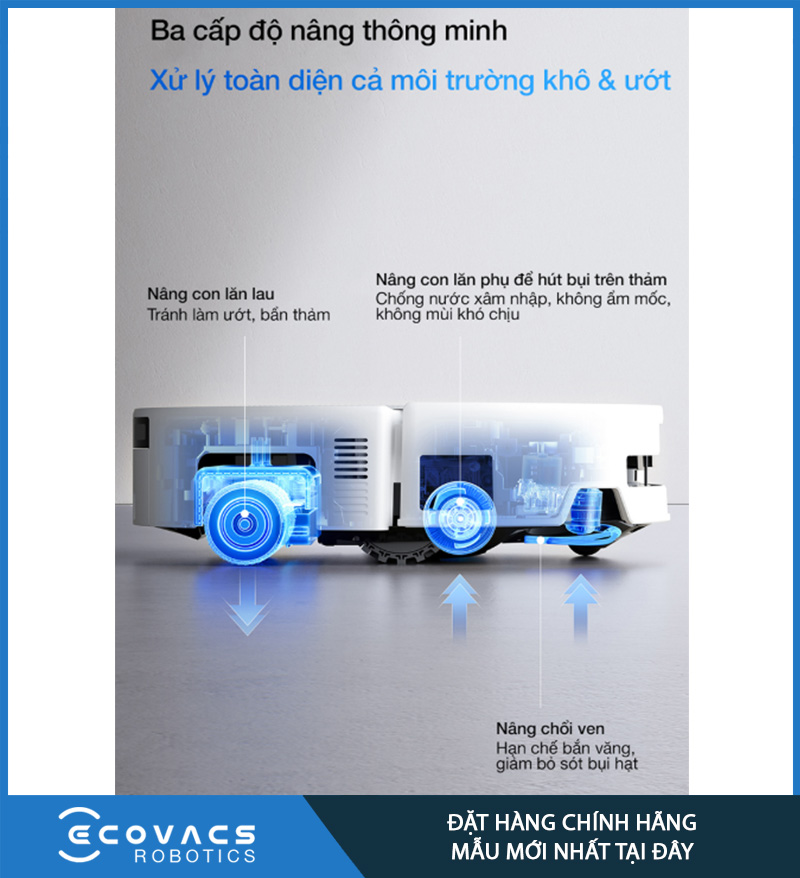 Ví dụ: thảm phòng khách thường chỉ cần hút mạnh, còn sàn xung quanh cần lau → robot nâng con lăn giúp làm đúng việc, đúng bề mặt.