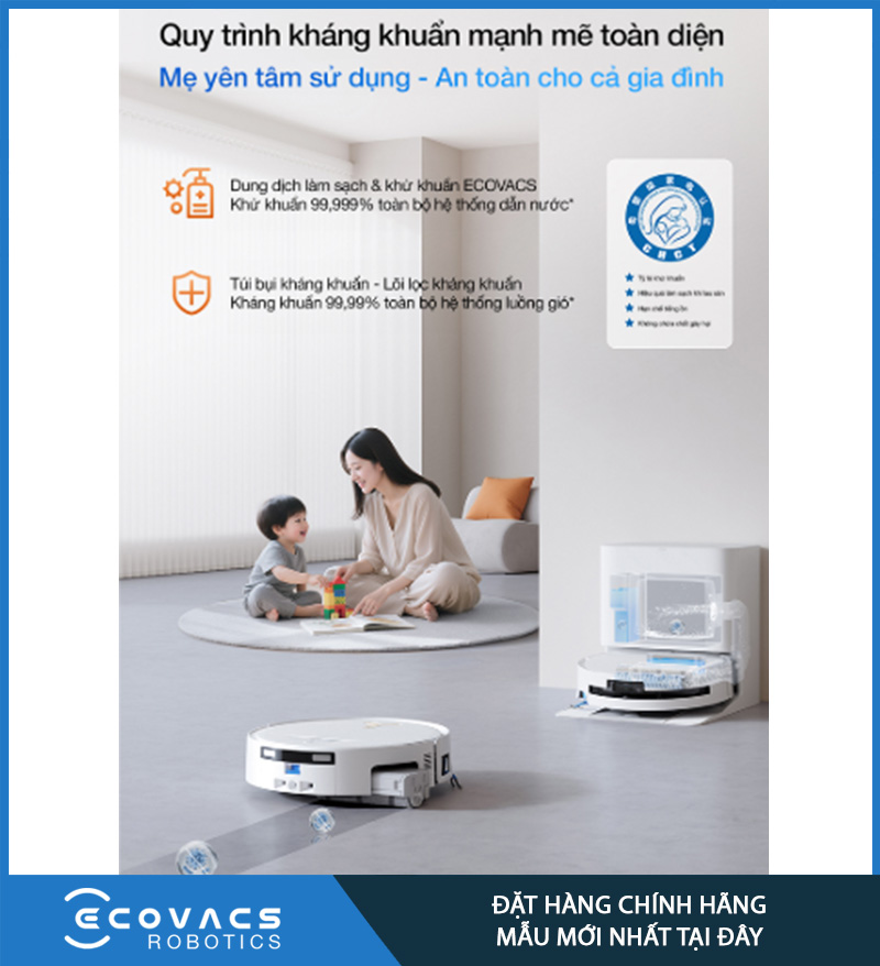Với robot lau nhà, “sạch” không chỉ là hết bụi nhìn thấy được, mà còn là vệ sinh lâu dài: hạn chế mùi ẩm, hạn chế vi khuẩn phát sinh ở các khu vực thường xuyên tiếp xúc nước như con lăn, khay, đường dẫn nước. Vì vậy, hệ thống kháng khuẩn toàn diện giúp nâng tiêu chuẩn vệ sinh, đặc biệt phù hợp gia đình có trẻ nhỏ hoặc người nhạy cảm.