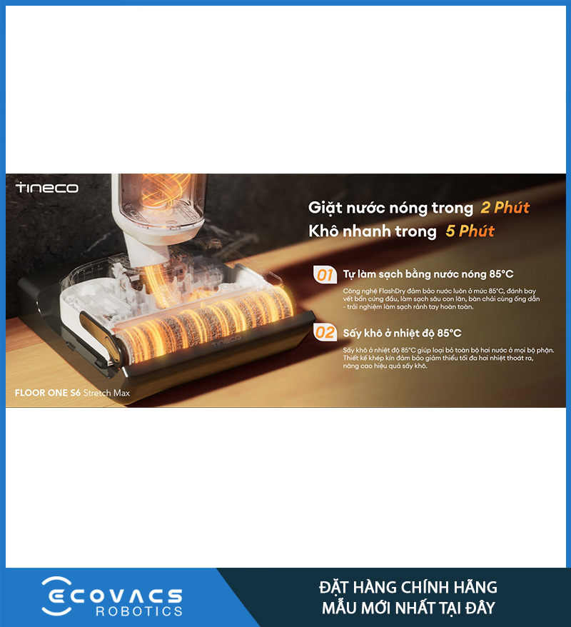 Tineco S6 Stretch Max tích hợp công nghệ tự làm sạch bằng nước nóng lên tới 85°C, giúp: