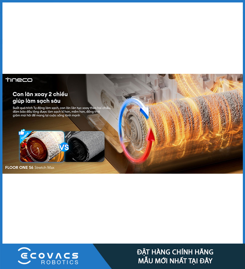 Khác biệt hoàn toàn với các dòng máy chỉ xoay 1 chiều, Tineco S6 Stretch Max được trang bị con lăn xoay 2 chiều – nâng cấp quan trọng giúp làm sạch sâu và đều hơn gấp nhiều lần.