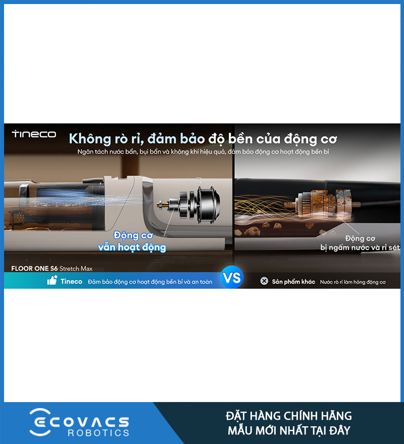 Một vấn đề nhiều người e ngại khi dùng máy hút lau sàn là nước thấm vào động cơ, gây chập cháy, hư hỏng. Nhưng với Tineco, bạn hoàn toàn yên tâm: