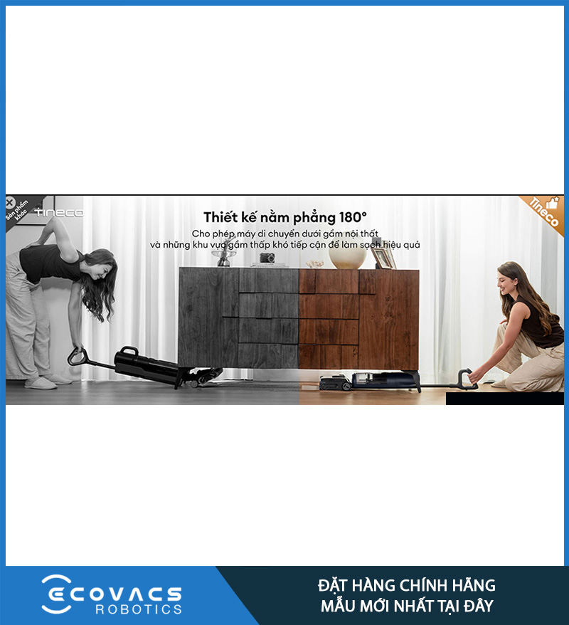 Với Tineco FLOOR ONE S7 Max Pro, bạn không cần phải làm điều đó nữa. Máy được thiết kế đặc biệt để gập nằm sát sàn 180°, và khi nằm phẳng, chiều cao chỉ 13cm.