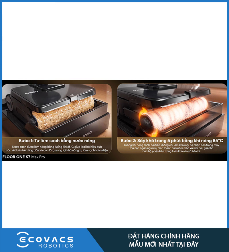 - Tự động giặt con lăn bằng nước nóng 85°C – giúp loại bỏ dầu mỡ, bụi bẩn, vi khuẩn