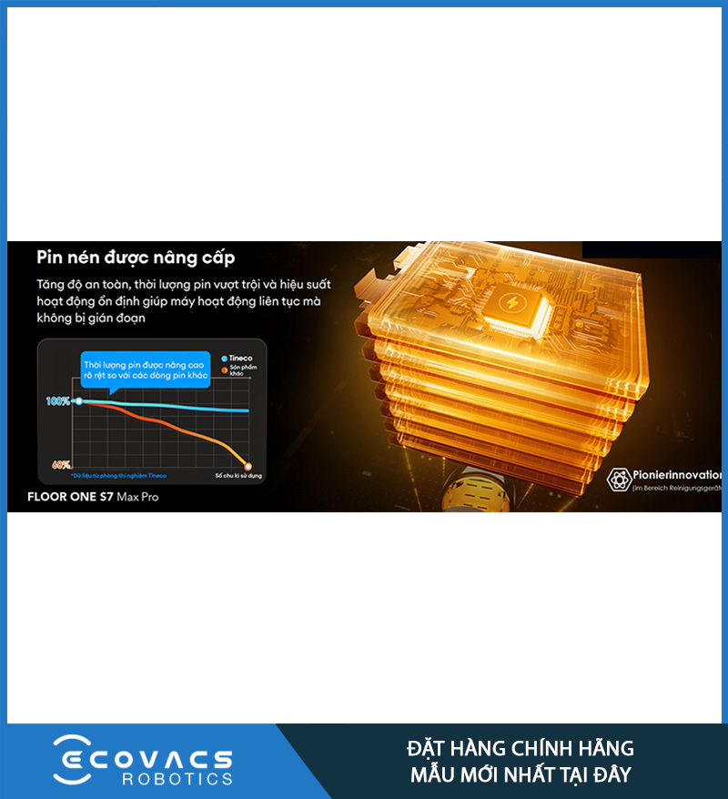 Tineco S7 Max Pro được trang bị pin nén công nghệ mới – Lithium Polymer mềm, với dung lượng lên tới 7 viên x 3900mAh, cho: