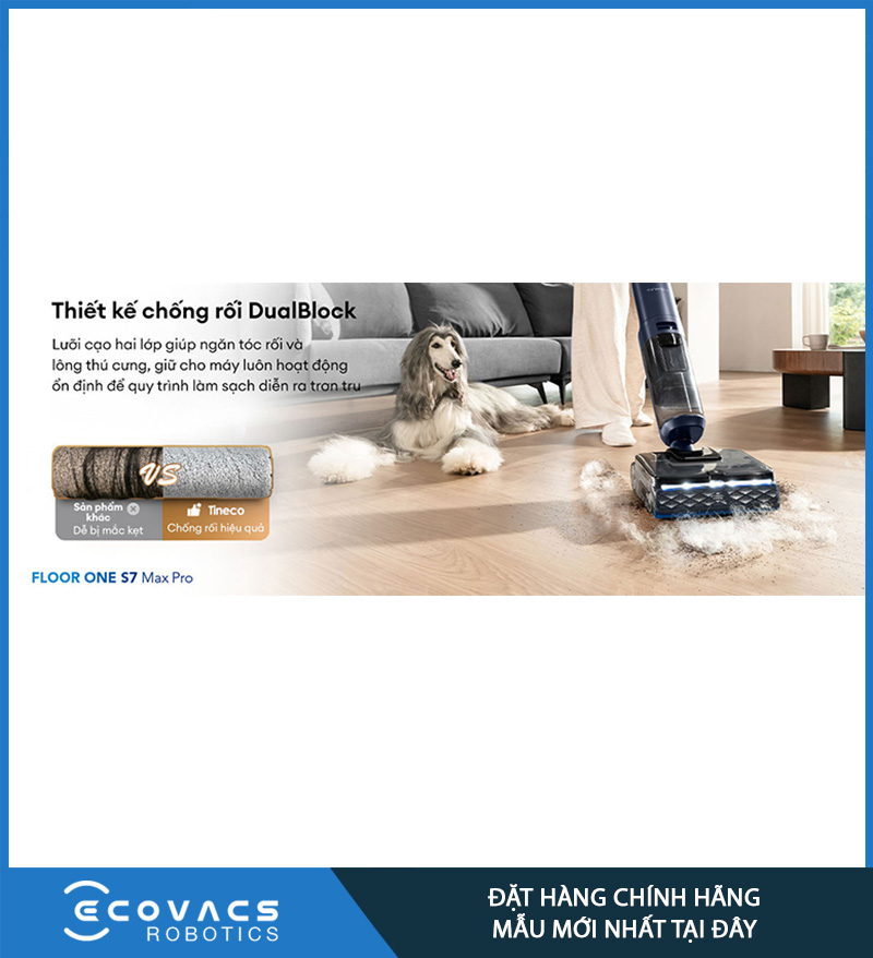 Tineco S7 Max Pro được trang bị hệ thống chống rối DualBlock – một cải tiến đột phá gồm 2 lớp chắn rối thông minh, giúp: