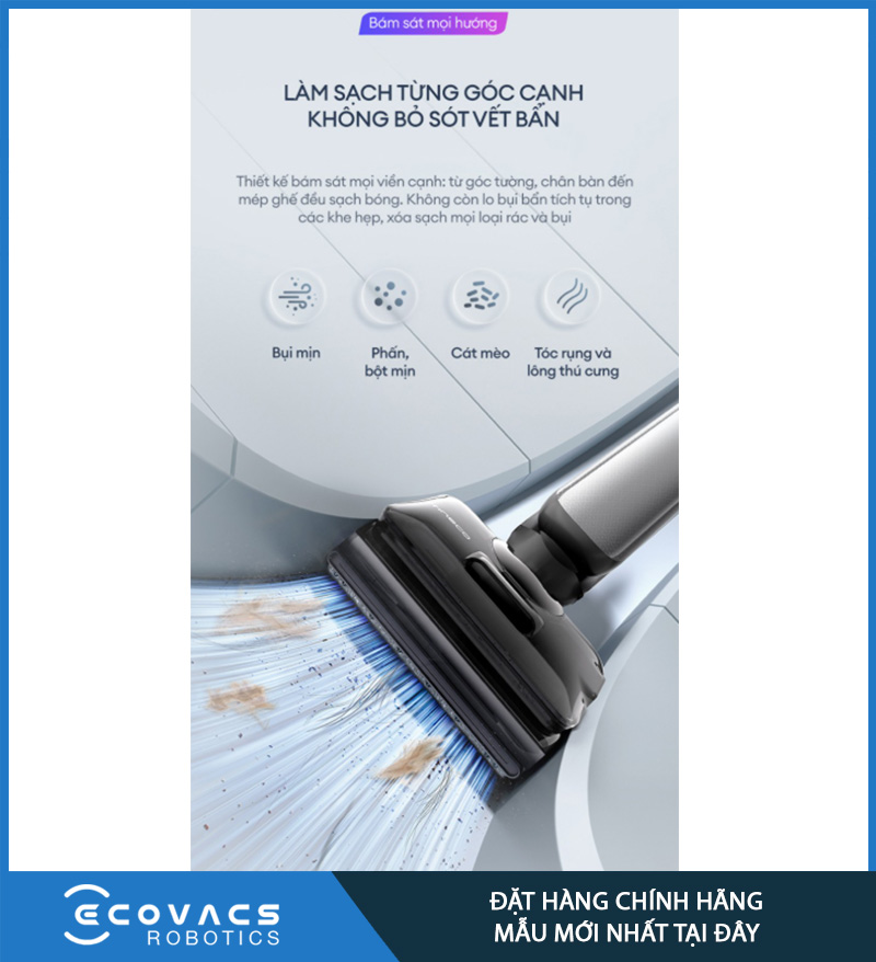 Với những căn hộ có nhiều nội thất, khe hẹp hoặc nuôi thú cưng, khả năng làm sạch sát cạnh này giúp ngăn bụi tích tụ và gây dị ứng.