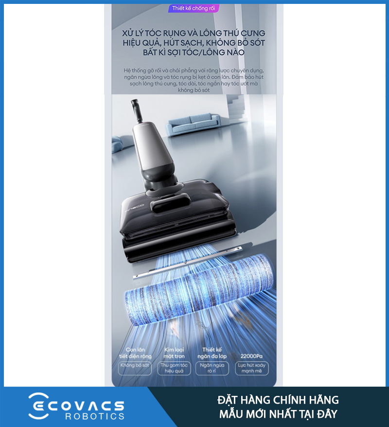 DualBlock là một trong những tính năng cực kỳ hữu ích với các gia đình có thú cưng như chó, mèo hoặc phụ nữ tóc dài – nơi tóc rụng thường xuyên và dễ gây kẹt chổi hút.