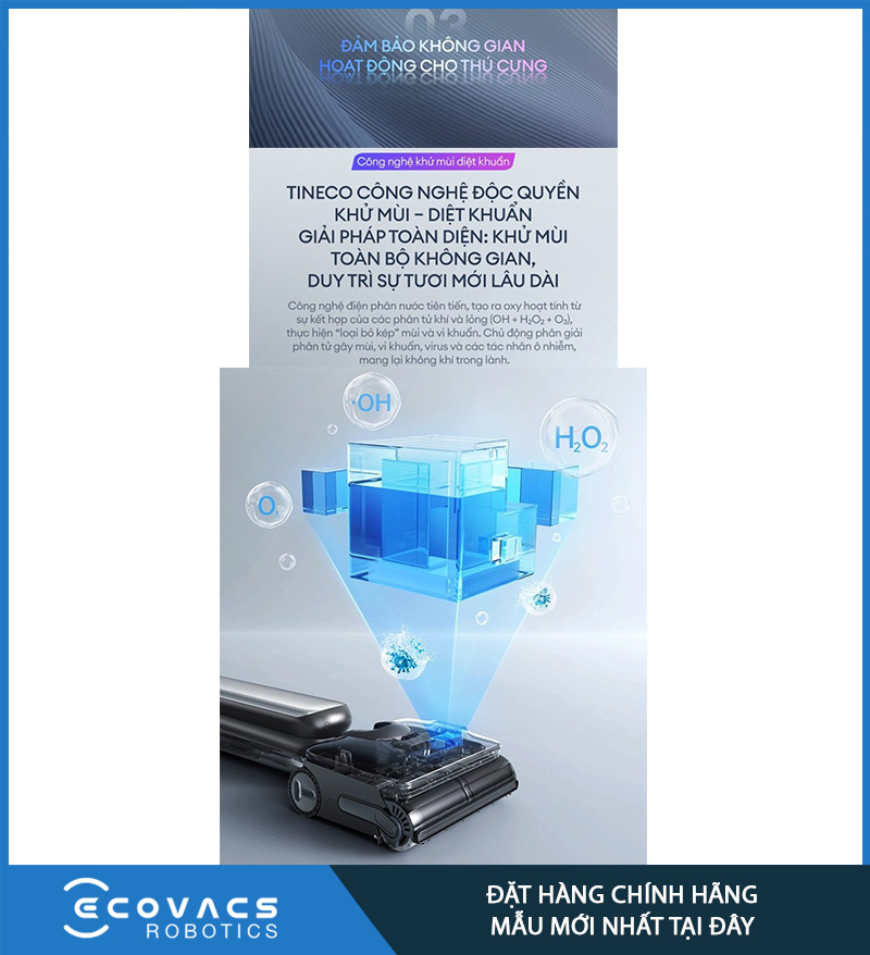 Dung dịch làm sạch mạnh mẽ (HOCl): tiêu diệt vi khuẩn, virus, nấm mốc.