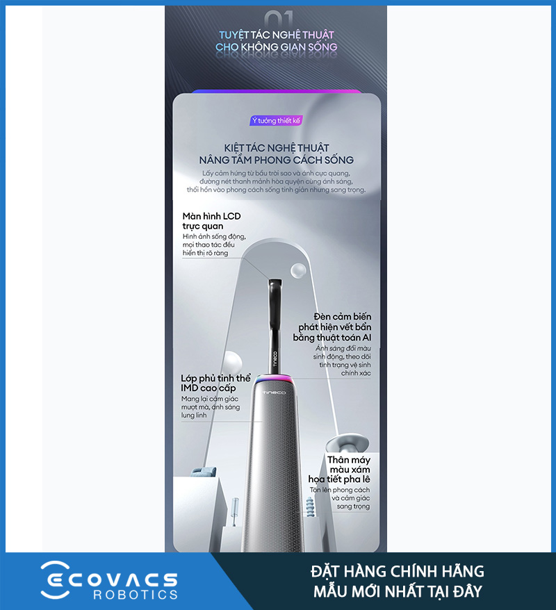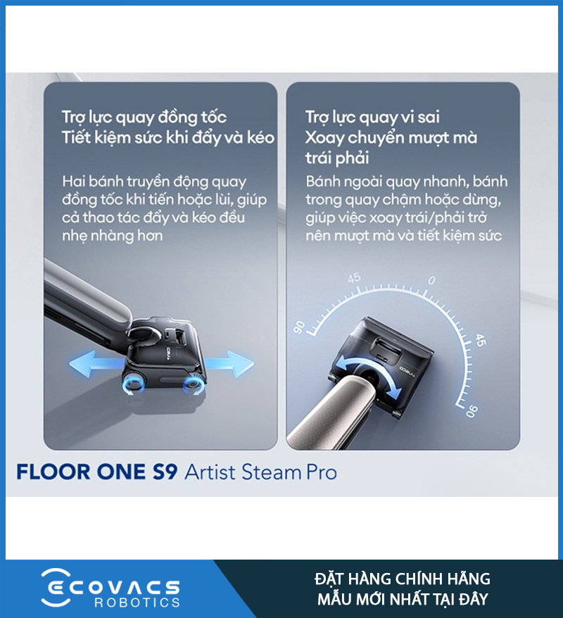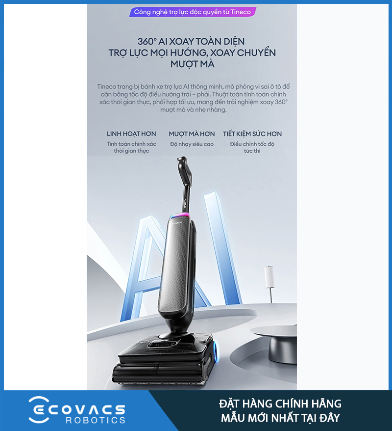 Một trong những điểm nâng tầm trải nghiệm người dùng ở Tineco S9 Artist Steam Pro là hệ thống AI trợ lực xoay 360° độc quyền, mang lại cảm giác "đẩy nhẹ – máy đi ngay" cực kỳ mượt mà.