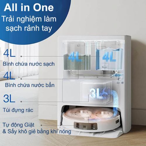 - Tự động bổ sung nước: Trạm sạc OMNI cũng có khả năng tự động bổ sung nước cho robot, giúp robot có thể lau nhà liên tục trong thời gian dài mà không cần sự can thiệp của người dùng.
